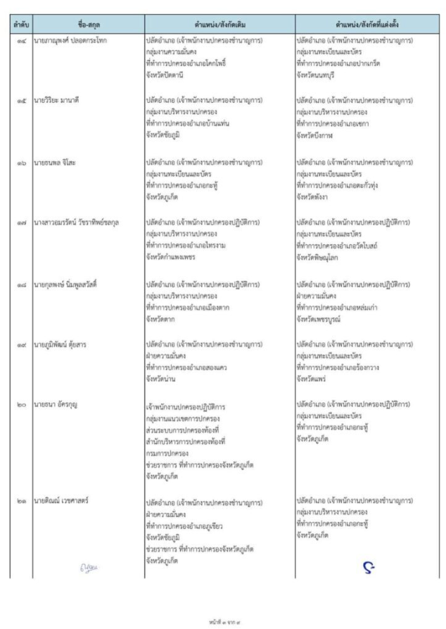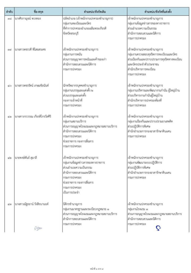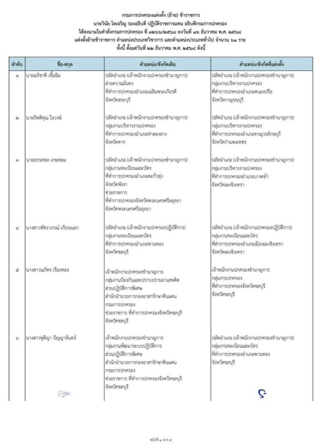 วันที่ 18 ธ.ค.2568 กรมการปกครอง กระทรวงมหาดไทย (มท.) ได้มีคำสั่ง(ย้าย)ข้าราชการ ช่วยราชการ และปฏิบัติราชการ 61 ตำแหน่ง ทั้งตำแหน่งปลัดอำเภอ เจ้าพนักงานปกครอง นักวิเคราะห์นโยบาย นิติกร และ เสมียนตราอำเภอ โดยมีผล 22 ธ.ค.นี้