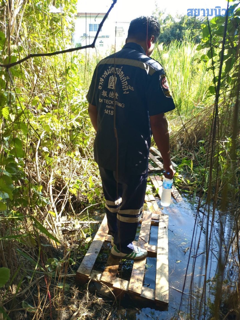 ผู้สื่อข่าวได้ลงพื้นที่มายังจุดเกิดเหตุ พบว่า เป็นป่ากกทึบ มีน้ำขัง ต้องเดินเท้าเข้าไปด้านในประมาณ 200 เมตร จึงจะพบกับศพผู้เสียชีวิต ที่อยู่บริเวณป่ากก มีน้ำขัง ซึ่งจากการสอบถาม คนตกปลาในบริเวณพื้นที่ ได้เล่าว่า เจอศพขณะกำลังเข้าไปหาปลาด้านใน ขณะกำลังหาปลาอยู่ แต่ปรากฏว่าพบศพผู้เสียชีวิต จึงรีบแจ้งเจ้าหน้าที่ทันที