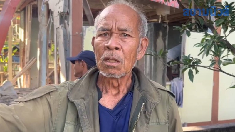นายบุญเลิศ อุ่นอ่อน อายุ 70 ปี บ้านใกล้เคียงอยู่ระหว่างลูกปืนตก กล่าวว่า กำลังกินข้าวขณะลูกปืนตกหลานบอกให้หมอบลง เพื่อเอาชีวิตรอด เสียงปืนดังแรงมากควันโขมง วันนี้จะเอาวัวเข้าคอกให้เรียบร้อย ก็จะเก็บสิ่งของออกไปอยู่กับญาติก่อน
