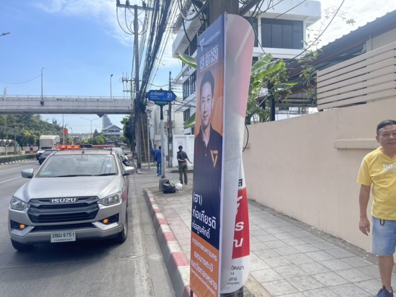 จากกรณี นายพงศกร รัตนเรืองวัฒนา ผู้สมัคร สส.กทม. เขต 14 บางกะปิ-วังทองหลาง เบอร์ 2 พรรคเพื่อไทย เข้าแจ้งความกับพนักงานสอบสวน สน.ลาดพร้าว หลังพบป้ายหาเสียงของตนถูกทำลายและถูกนำป้ายของพรรคการเมืองอื่นมาติดทับ บริเวณปากซอยนวมินทร์ 21 แขวงคลองจั่น เขตบางกะปิ