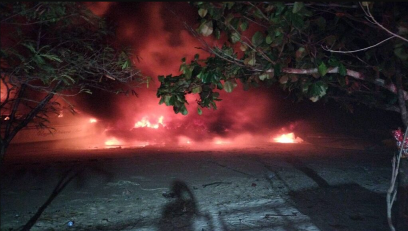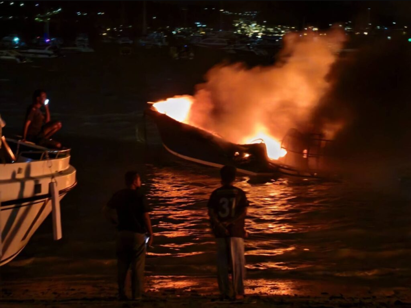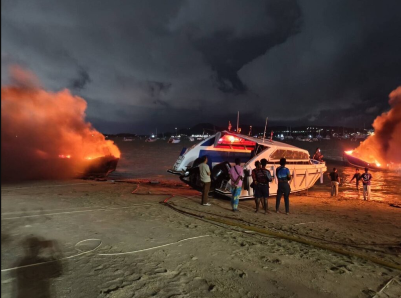 ในที่เกิดเหตุพบเพลิงกำลังลุกไหม้เรือสปีดโบ๊ตของบริษัทเอกชนอย่างรุนแรง แสงเพลิงสีแดงฉานและกลุ่มควันจำนวนมากพวยพุ่งขึ้นสู่ท้องฟ้า สามารถมองเห็นได้จากระยะไกลถึงบริเวณวงเวียนห้าแยกฉลอง สร้างความแตกตื่นให้กับประชาชนในพื้นที่ใกล้เคียง