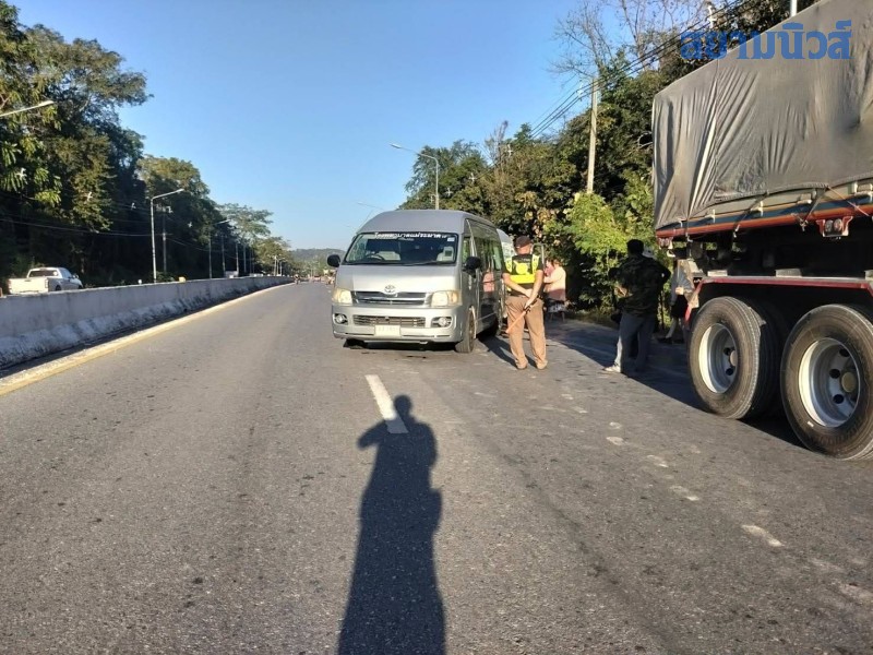 ที่เกิดเหตุพบรถตู้รับส่งนักเรียน หมายเลขทะเบียน นข 4351 สุโขทัย ซึ่งเป็นรถรับส่งนักเรียนของชาวบ้านหมู่ 9 บ้านลานกระบือใต้ ต.ตลิ่งชัน อ.บ้านด่านลานหอย ประสบอุบัติเหตุชนกับรถบรรทุกเทรลเลอร์ 18 ล้อ
