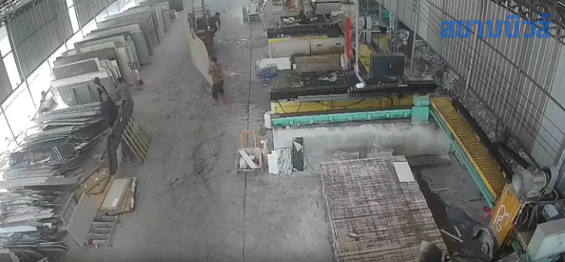 จากการตรวจสอบกล้องวงจรปิด พบว่าก่อนเกิดเหตุ ผู้เสียชีวิต ได้เดินเข้าไปในซอกกองหินอ่อน โดยมีเพื่อนคนงานอยู่อีก 2 คน 1 คนขับรถโฟล์คลิฟท์ ส่วนอีก 1 คนได้ยกแผ่นหินอ่อนมาสอดวางซ้อนไว้ ขณะที่ผู้เสียชีวิตได้เดินเข้าไปในซอกหิน จู่ๆ ปรากฎว่า แผ่นหินอ่อนเกิดล้มระเนระนาดและทับร่างผู้เสียชีวิต จนเกิดเหตุสลดดังกล่าว