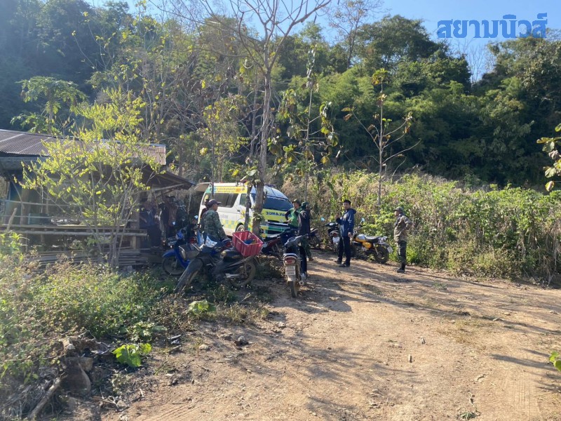 ที่เกิดเหตุ เป็นถนนในป่า 2 ข้างทางเต็มไปด้วยต้นหญ้าและป่าข่าวโพด กลางถนนพบร่างผู้เสียชีวิตทราบชื่อในเวลาต่อมาคือ นายสมคิด อายุ 53 ปี สวมเสื้อแขนยาวสีเขียว กางเกงลายทหาร