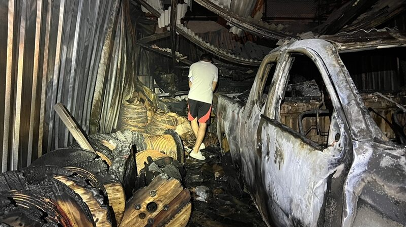 หลังเพลิงสงบพบว่า จุดที่มีความเสียหายมากที่สุดเป็นล็อคกลาง หลังคาซึ่งเป็นโครงเหล็กพังลงมา ด้านในมีรถกระบะจอดอยู่ถูกไฟไหม้เสียหาย 2 คัน และยังพบว่ามีม้วนสายไฟจำนวนมากรวมถึงเครื่องมือช่าง และแบตเตอรี่สว่านไฟฟ้าประมาณ 40 ก้อนที่อยู่หลังรถกระบะเสียหายทั้งหมดอีกด้วย ขณะเดียวกันอีก 2 ล็อคที่ติดกันก็ได้รับผลกระทบถูกไฟไหม้เสียหายบางส่วน