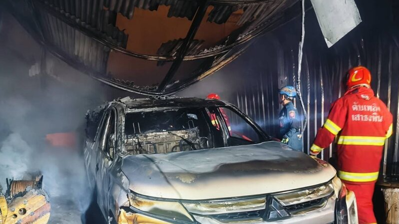 ก็พบเห็นกลุ่มควันพวยพุ่งออกมาเป็นจำนวนมาก จึงตัดสินใจตะโกนขอความช่วยเหลือจากคนที่อยู่อาศัยใกล้เคียง กระทั่งหลายคนเข้ามาช่วยเหลือ ส่วนต้นเพลิงพบเกิดขึ้นบริเวณล็อคกลางที่มีรถกระบะจอดอยู่ในส่วนของสาเหตุนั้นยังไม่ทราบ