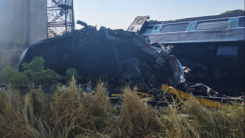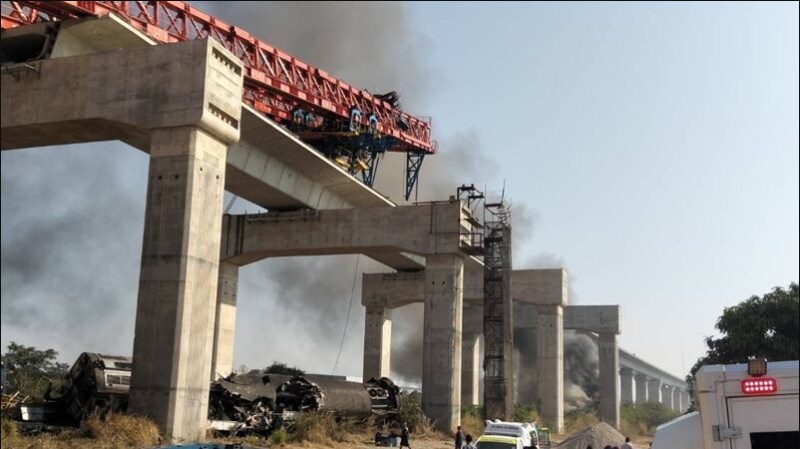 จนกระทั่งมาถึงจุดเกิดเหตุ ได้ยินเสียงเครนตกใส่หลังคารถไฟ ก่อนที่หัวจักรรถนั้นจะดึงสายเครน จนทำให้ตู้รถไฟนั้นหลุดกระเด็นออกจากราง ด้าน คนงานก่อสร้างรถไฟ กล่าวว่า เครนที่ใช้ก่อสร้างรถไฟความเร็วสูงนั้นหักหล่นลงมาด้านล่างพอดีกับรถไฟที่เกิดเหตุนั้นเดินทางมาถึงพอดี จึงทำให้ตู้รถไฟที่ 2 กับ 3 นั้นเกี่ยวเข้ากับเครนจนรถไฟร่วงตกราง