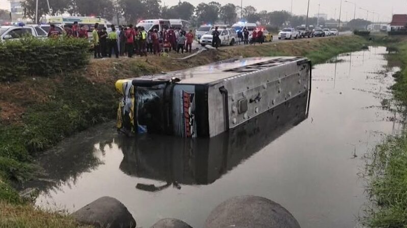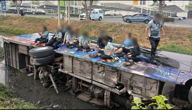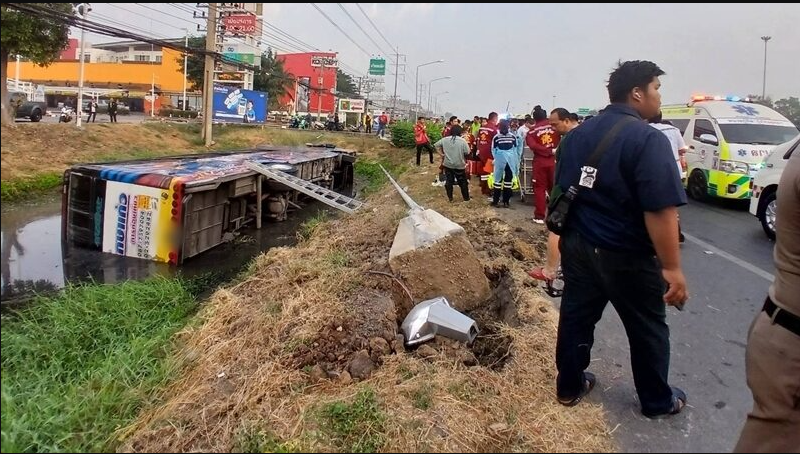 เมื่อเช้าเวลา 07.30 น. ของวันที่ 18 ม.ค.2569 ที่ผ่านมา พ.ต.ท.ธเนศพล แสงโชติ สารวัตร(สอบสวน) สภ.บางปะอิน รับแจ้งเหตุรถบัสรับส่งพนักงานโรงงาน เสียหลักตกถนนทางหลวงหมาเลข32 สายเอเชีย ขาออก ช่องทางคู่ขนาน หลักกิโลเมตรที่ 15 หน้าห้างสรรพสินค้าแห่งหนึ่ง ต.บ้านกรด อ.บางปะอิน จ.พระนครศรีอยุธยา จึงรุดไปตรวจสอบพร้อมเจ้าหน้าที่สมาคมอยุธยารวมใจ