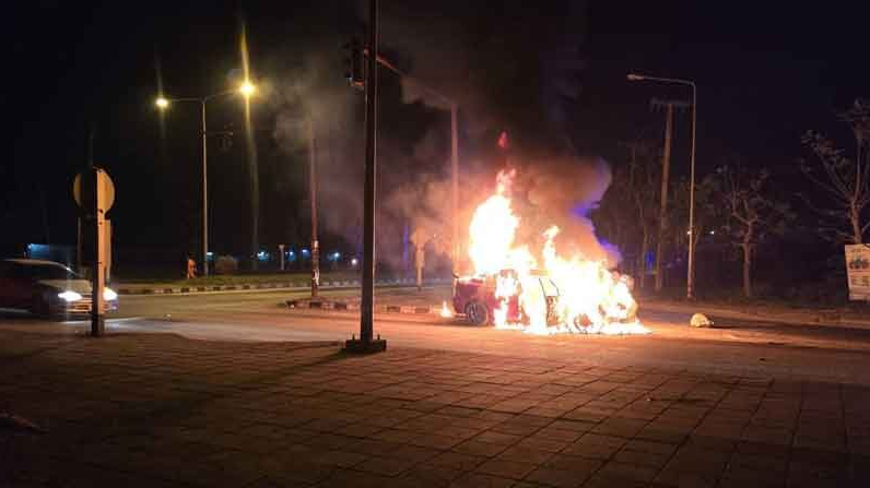 ที่เกิดเหตุอยู่ใกล้แนวชายแดนไทย-เมียนมา โดยที่กลางสามแยกไฟแดงซึ่งมีรถสัญจรเป็นจำนวนมาก พบเพลิงกำลังลุกไหม้รถยนต์เก๋ง ยี่ห้อมาสด้า สีแดง หมายเลขทะเบียน กอ-5088 ระยอง เบื้องต้นพบว่ามีเพลิงไหม้ที่ห้องเครื่องด้านหน้าของรถยนต์จนเพียงไม่กี่นาทีเพลิงก็ลุกลามไหม้ไปทั่วคันรถอย่างรวดเร็ว กลุ่มควันไฟและแสงเปลวเพลิงจำนวนมากพวยพุ่งไปทั่วสามแยกไฟแดงท่ามกลางรถที่สัญจรไปมาจนเป็นภาพที่น่าหวาดเสียว