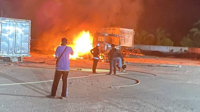 เมื่อเวลา 02.05 น. วันที่ 21 ม.ค.2569 เจ้าหน้าที่ตำรวจ สภ.สุไหงโก-ลก รับแจ้งเหตุมีคนร้ายไม่ทราบจำนวน ลอบวางระเบิดขึ้นที่รถบรรทุกพ่วง ซึ่งจอดอยู่ภายในโกดังแห่งหนึ่ง พื้นที่ ต.ปาเสมัส อ.สุไหงโก-ลก จ.นราธิวาส