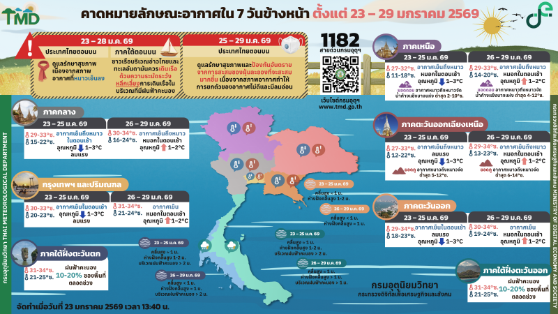 คาดหมายอากาศรายภาค 23 - 29 มกราคม พ.ศ. 2569