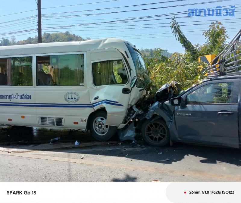 จากการสอบถามเจ้าหน้าที่ ทราบว่า รถมินิบัสกำลังขับขึ้นไปทางอำเภอสังขละบุรี และรถกระบะคอกได้ขับลงมา คาดว่าเบรกแตก จึงข้ามเลนมาชนประสานงากับรถมินิบัสทำให้เกิดอุบัติเหตุในครั้งนี้