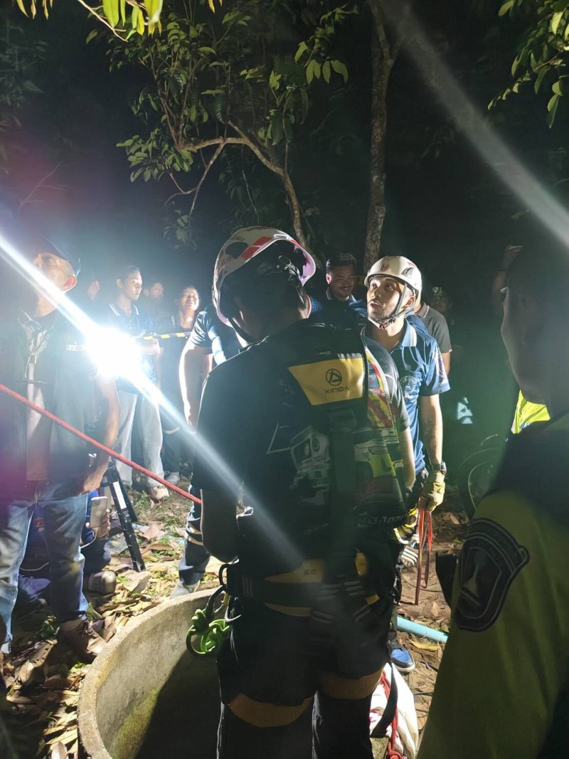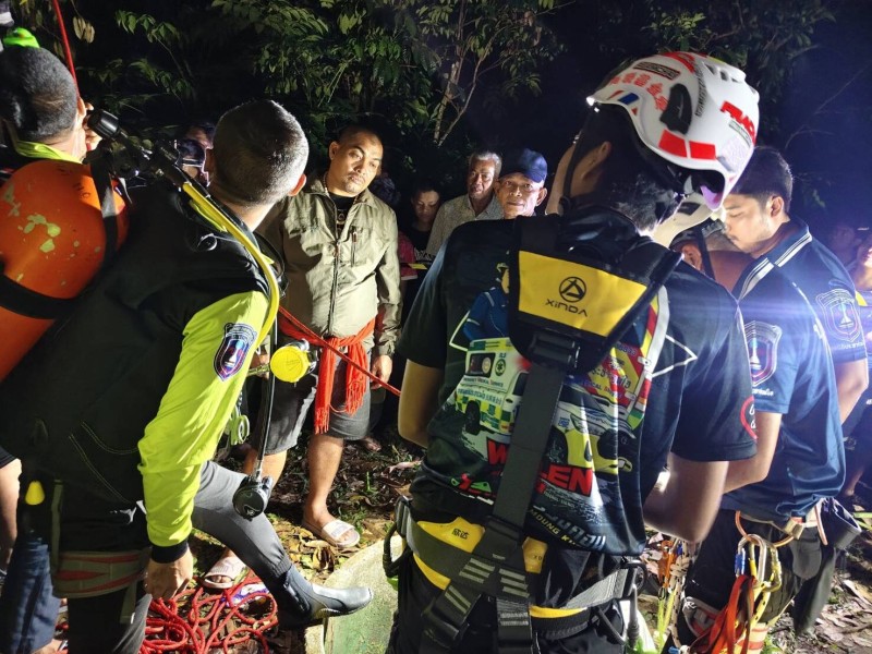 จึงพร้อมด้วยแพทย์ รพ.ร่อนพิบูลย์ และเจ้าหน้าที่มูลนิธิประชาร่วมใจเข้าตรวจสอบที่เกิดเหตุ พบศพผู้เสียชีวิตอยู่ในบ่อดังกล่าว เจ้าหน้าที่กู้ภัย ได้ลงไปนำร่างผู้เสียชีวิตขึ้นมาจากบ่อดังกล่าว ทราบชื่อในเวลาต่อมา อายุ 57 ปี อยู่หมู่ 9 ต.หินตก อ.ร่อนพิบูลย์ จ.นครศรีธรรมราช ตรวจสอบไม่พบบาดแผลหรือร่องรอยถูกทำร้ายแต่อย่างใด