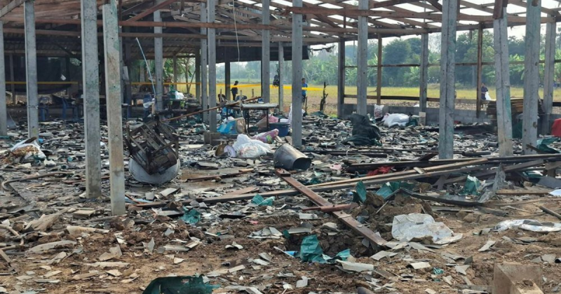 จากการตรวจสอบพบว่า ที่เกิดเหตุเป็นโรงเรือนชั้นเดียว ได้รับความเสียหายทั้งหลัง และแรงระเบิดยังส่งผลให้อาคารข้างเคียงเสียหายอีก 2 หลัง
