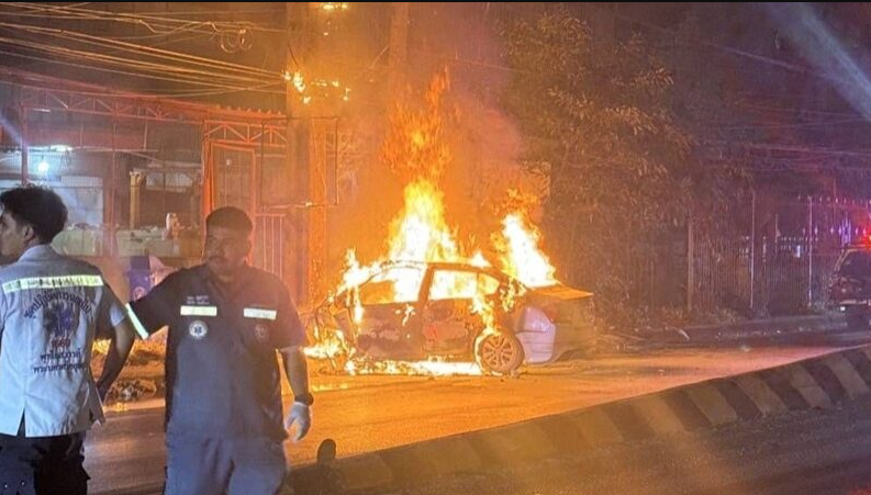 จากการตรวจสอบกล้องวงจรปิดบริเวณอาคารพบภาพรถเก๋งขับมาด้วยความเร็ว ก่อนพุ่งชนเสาไฟฟ้าริมถนนอย่างแรง จนเครื่องยนต์กระเด็นเข้าไปในอาคารและเกิดประกายไฟ เจ้าของอาคารรีบออกมาดับไฟและพยายามช่วยเหลือผู้ขับขี่ทันที แต่ไม่สำเร็จ เนื่องจากไฟลุกไหม้อย่างรวดเร็ว เบื้องต้นพนักงานสอบสวนได้บันทึกภาพและเก็บหลักฐานในที่เกิดเหตุ ก่อนมอบหมายให้เจ้าหน้าที่มูลนิธิพุทไธสวรรย์นำร่างผู้เสียชีวิตส่งชันสูตรที่สถาบันนิติวิทยาศาสตร์ จังหวัดปทุมธานี เพื่อดำเนินการตามขั้นตอนของกฎหมายต่อไป