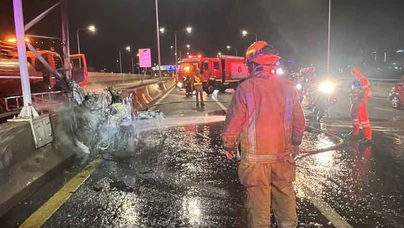 เมื่อเวลา 00.40 น.วันที่ 4 ก.พ.69 พ.ต.ต.หญิงทิพวดี อยู่ทรัพย์ สารวัตร(สอบสวน) สน.ทางด่วน 2 รับแจ้งเหตุเพลิงไหม้รถยนต์ บนทางด่วนพิเศษศรีรัช แขวงทุ่งพญาไท เขตราชเทวี กทม. จึงรุดไปตรวจสอบพร้อมเจ้าหน้าที่สถานีดับเพลิงพญาไท รถน้ำ 1 คัน หน่วยกู้ภัยจราจรบนทางด่วนขั้นที่ 2 และอาสาสมัครมูลนิธิร่วมกตัญญู