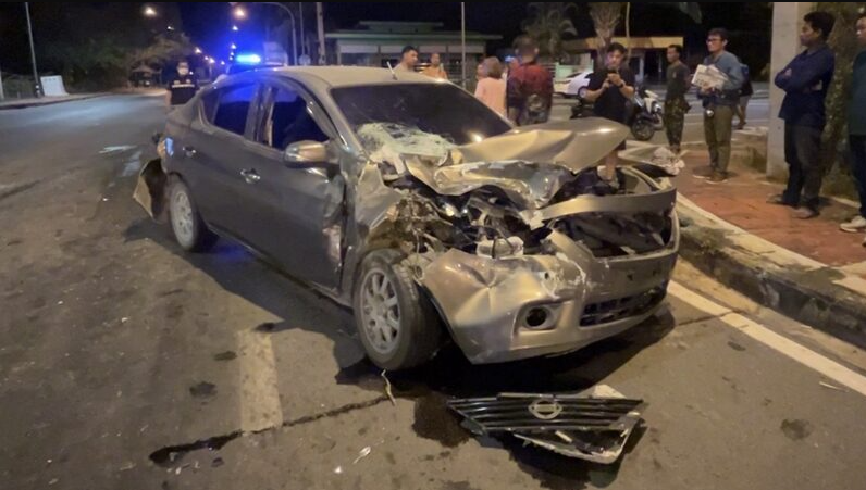 ที่เกิดเหตุพบรถเก๋ง ยี่ห้อนิสสัน อัลเมร่า ทะเบียน ชลบุรี สภาพด้านหน้าพังยับจอดอยู่ ตรวจสอบพบมีผู้บาดเจ็บจำนวน 5 ราย ติดอยู่ภายในรถ เจ้าหน้าที่จึงเร่งให้การช่วยเหลือนำตัวผู้บาดเจ็บทั้ง 5 รายออกมา จากการตรวจสอบพบว่าทั้งหมดเป็นนักศึกษาของมหาวิทยาลัยแห่งหนึ่ง