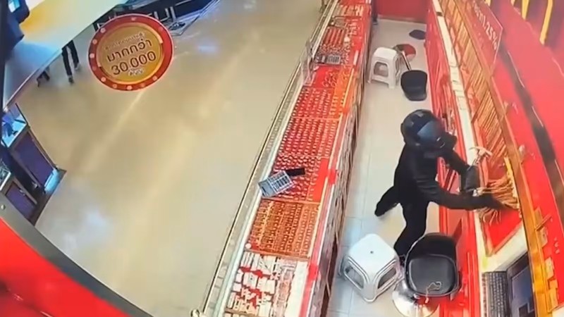 จากภาพกล้องวงจรปิดพบว่า คนร้ายเป็นชาย รูปร่างเล็ก สูงประมาณ 160-170 เซนติเมตร สวมเสื้อผ้าสีดำ ใส่หมวกไอ้โม่งและหมวกกันน็อกสีดำ เดินพุ่งตรงเข้าไปในร้าน ก่อนกระโดดข้ามตู้โชว์ทองรูปพรรณ ขณะพนักงานหญิงกำลังให้บริการลูกค้าคนอื่นอยู่