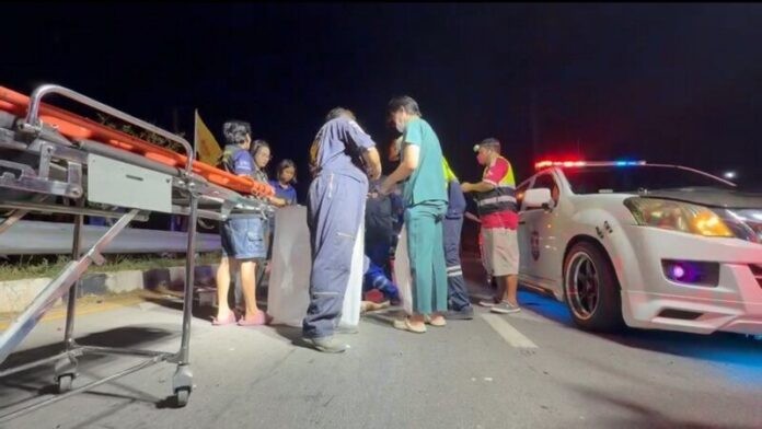 เมื่อเวลา 21.30 น.วันที่ 16 ก.พ.2569 พ.ต.ท.ไพวัลย์ สรีภะนา สว.(สอบสวน) สภ.เมืองสมุทรสงคราม ได้รับแจ้งเกิดอุบัติเหตุรถยนต์ชนรถจักรยานยนต์ บนถนนเอกชัย บริเวณหน้าศูนย์การศึกษาชื่อดังในพื้นที่ ตำบลลาดใหญ่ อำเภอเมือง จังหวัดสมุทรสงคราม จึงรุดไปตรวจสอบ พร้อมด้วยเจ้าหน้าที่กู้ภัยมูลนิธิสว่างเบญจธรรมสมุทรสงคราม
