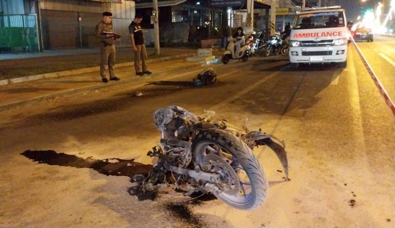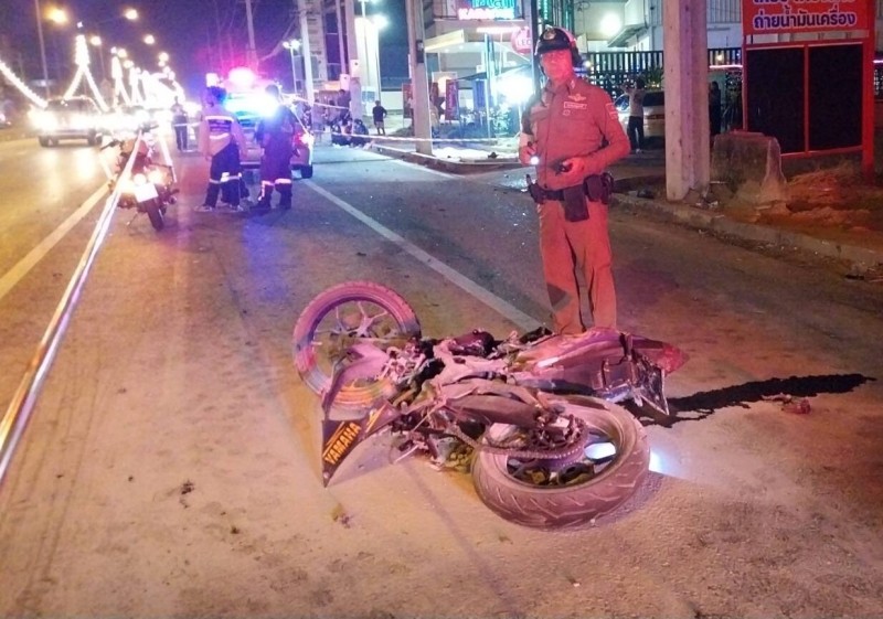 จึงเดินทางไปตรวจสอบที่เกิดเหตุพร้อมด้วย อาสามูลนิธิปอเต็กตึ้ง ที่เกิดเหตุพบ รถจักรยานยนต์ ยี่ห้อ Yamaha R3 300 cc สี ถูกไฟลุกไหม้จนเสียหายทั้งคันใกล้กันพบ ตัวเครื่องรถจักรยานยนต์ กระเด็นออกไปทำให้เกิดไฟลุก ห่างจากรถจักรยานยนต์ 20 เมตร พบคนขับรถจักรยานยนต์เสียชีวิตเป็นชาย 1 ราย ทราบชื่อ นายวรเมธ แซ่เจี่ย อายุ 27 ปี ชาวอำเภอสามโคกสภาพ สภาพนอนคว่ำเสียชีวิตติดอยู่กับเสาไฟฟ้า
