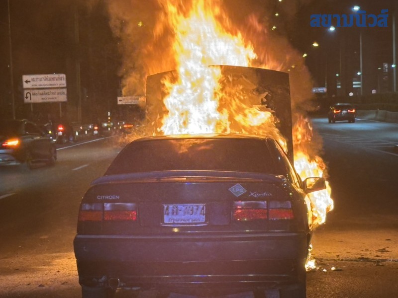 จากการสอบถามเจ้าของรถ (ขอสงวนชื่อ) ซึ่งอยู่ในอาการตกใจ เล่าว่า รถคันนี้ติดตั้งระบบ 2 ประเภท คือ น้ำมันเบนซินและแก๊ส LPG โดยก่อนเกิดเหตุ ตนเพิ่งไปรับรถออกมาจากอู่ซ่อมรถซีตรองแห่งหนึ่งย่านหลักสี่ เนื่องจากก่อนหน้านี้พบปัญหา พัดลมหม้อน้ำไม่ทำงาน เมื่อซ่อมเสร็จจึงได้รับรถออกมาเพื่อขับทดสอบระบบ (Test Drive) โดยตั้งใจว่าเมื่อทดสอบเสร็จจะวนรถกลับเข้าบ้านพักในซอยแจ้งวัฒนะ 14 แต่ในระหว่างที่กำลังขับลงจากทางด่วนโทลล์เวย์ สังเกตเห็นกลุ่มควันพุ่งออกมาจากฝากระโปรงหน้าอย่างผิดปกติ ไม่นานนักก็มีแสงเพลิงปะทุขึ้น ตนจึงรีบตัดสินใจจอดรถข้างทางและวิ่งหนีออกมาได้ทันก่อนที่ไฟจะลุกลาม