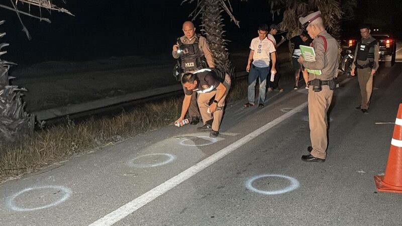 พบหมวกแก๊ปผู้ชาย และรองเท้าแตะ 2 คู่ ตกอยู่ข้างรถ นอกจากนี้ ยังพบปลอกกระสุนปืน ขนาด 11 มม. และ 9 มม. ตกอยู่เกลื่อนพื้นถนน จำนวน 9 ปลอก และหัวกระสุนปืนอีก 2 หัว เจ้าหน้าที่ตำรวจจึงได้เก็บไว้เป็นหลักฐาน