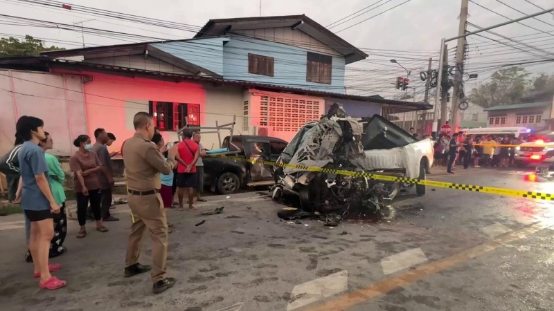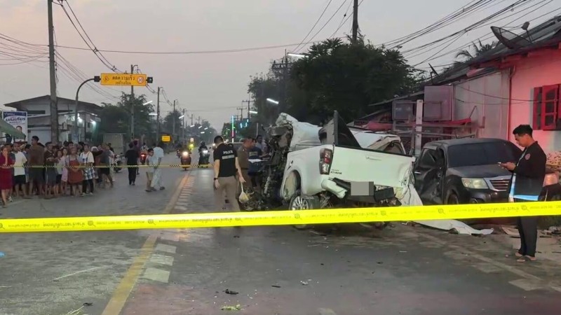 เมื่อเวลา 05.30 น. วันที่ 22 ก.พ.2569 ว่าที่ พ.ต.ต.โสธร สุขแก้ว สว.(สอบสวน) สภ.สรรคบุรี อ.สรรคบุรี จ.ชัยนาท รับแจ้งอุบัติเหตุ บริเวณสี่แยกไฟแดงวัดจันทนาราม ม.1 ต.ห้วยกรด อ.สรรคบุรี จ.ชัยนาท รถกระบะฝ่าไฟแดง ชนท้ายรถกระบะรับส่งคนงาน แล้วไปชนกับเสาไฟฟ้า จากนั้นหมุนเคว้งไปชนกับรถกระบะที่จอดอยู่ เสียชีวิตและบาดเจ็บหลายราย รุดตรวจสอบพร้อมเจ้าหน้าที่อาสาสมัครมูลนิธิร่วมกตัญญูจังหวัดชัยนาทและแพทย์เวร รพ.สรรคบุรี