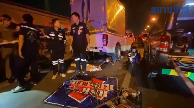 เมื่อเวลา 22.00 น. วันที่ 23 ก.พ. 2569 เจ้าหน้าที่ตำรวจ สภ.บางเสาธง ได้รับแจ้งว่ามีรถตู้ทึบเฉี่ยวชนรถจักรยานยนต์ เหตุเกิดบนถนนเทพารักษ์ กม.23 ช่วงสะพานข้ามคลองหัวเกลือ ตำบลบางเสาธง อำเภอบางเสาธง จังหวัดสมุทรปราการ หลังรับแจ้ง จึงประสาน เจ้าหน้าที่กู้ภัยป่อเต็กตึ๊ง เดินทางไปตรวจสอบ