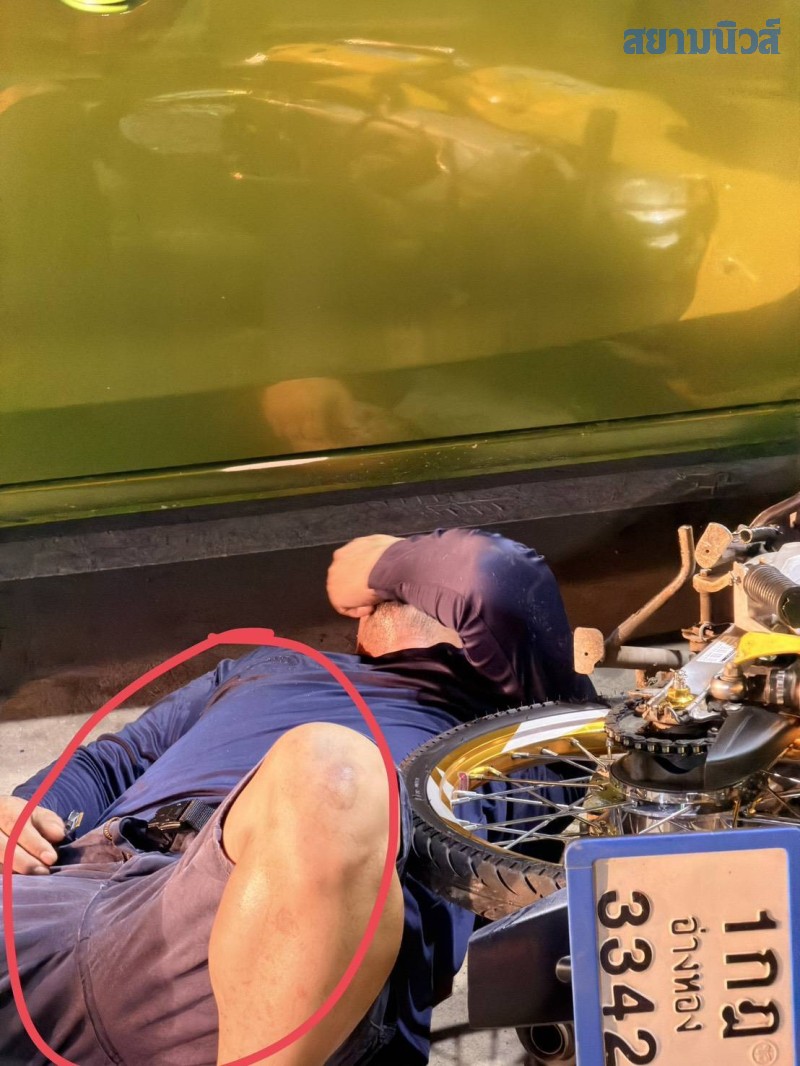 ต่อมาเวลา 03:29 น. รถของผู้ป่วย (รถกระบะบรรทุกสีเขียว) ได้เคลื่อนตัวเข้าสู่ปั๊มน้ำมัน โดยขับเคลื่อนอย่างช้าๆ และจอดบริเวณหน้าร้านสะดวกซื้อ ส่งผลให้เกิดการเฉี่ยวชนกับรถจักรยานยนต์ 1 คัน