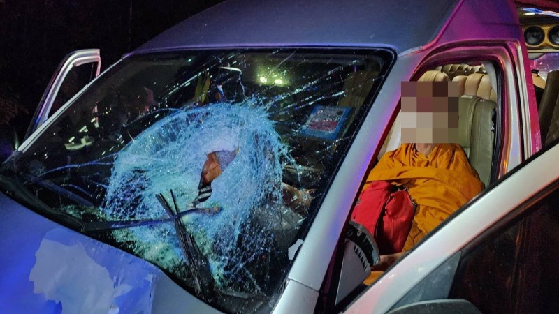 ส่วนผู้โดยสารในรถตู้นั่งมาด้วยกันทั้งหมด 7 คนต่างตกใจรีบลงจากรถ มีเพียง พระครู อายุ 73 ปี ที่นั่งคู่กับคนขับยังอยู่ในอาการตกใจขาสั่นลงจากรถไม่ได้ กู้ภัยต้องช่วยกันประคองลงมาพบว่าได้รับบาดเจ็บบริเวณขาเล็กน้อย