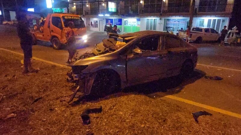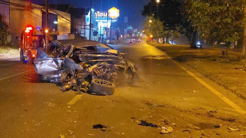 สอบสวนทราบว่า ก่อนเกิดเหตุรถเก๋งคันนี้ขับออกมาจากที่ทำงานในซอยข้างโรงเรียนเมืองถลาง เพี่อกลับที่พักด้วยความเร็วสูง มาถึงจุดเกิดเหตุเสียหลักพุ่งขึ้นฟุตปาธเกาะกลางถนนชนต้นไม้เข้าอย่างจังพลิกคว่ำพังยับเยิน เบื้องต้น เจ้าหน้าที่ตำรวจจะเร่งทำการตรวจภาพจากกล้องวงจรปิด เพื่อหาสาเหตุของอุบัติเหตุครั้งนี้อย่างละเอียดอีกครั้งต่อไป