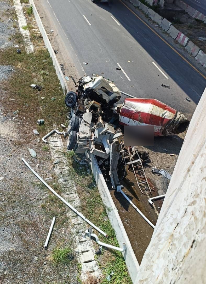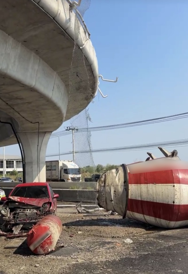 วันที่ 3 เมษายน 2569 มูลนิธิร่วมกตัญญู รายงาน อุบัติเหตุรถโม่ปูนตกจากสะพานกลับรถ ถนนเทพรัตน ขาเข้า กม.32 การจราจรติดขัดหนัก มีผู้บาดเจ็บ เจ้าหน้าที่เร่งเข้าช่วยเหลือ