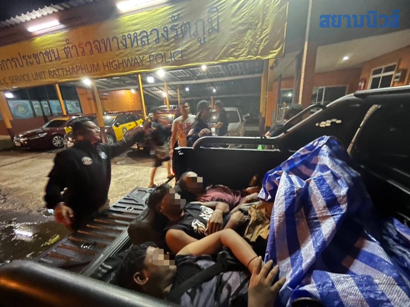 ต่อมา พบนายกร (นามสมมติ) อายุ 45 ปี สัญชาติไทย และนายจอ (นามสมมติ) อายุ 44 ปี สัญชาติเมียนมา ขับรถกระบะสี่ประตู จำนวน 2 คัน ท่าทางพิรุธ จึงขับรถไล่ติดตาม จนกระทั่งมาถูกจับกุมได้ที่จุดตรวจจุดสกัดหน้าสถานีบริการประชาชนตำรวจทางหลวงรัตภูมิ ส.ทล.3 กก.7 บก.ทล. จากการสอบถามทั้ง 2 คน ซึ่งเป็นเพื่อนสนิทกัน สารภาพว่า ร่วมกันรับแรงงานต่างด้าวสัญชาติเมียนมาหลบหนีเข้าเมืองรวม 21 คน มาจากจังหวัดชุมพร ซุกซ่อนอัดแน่นไว้ในห้องโดยสาร และบางส่วนนอนที่ท้ายกระบะ โดยมีผ้าใบคลุมอำพรางสายตา ต้องการมาส่งให้นายหน้าที่จังหวัดสงขลา เตรียมพาลักลอบออกไปประเทศมาเลเซียทางช่องทางธรรมชาติ