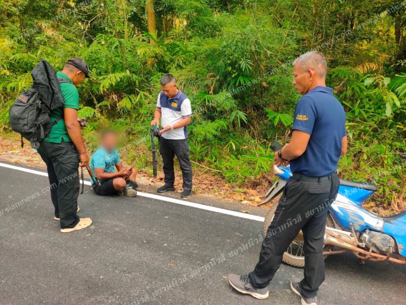 สถานที่จับกุม ริมถนนทางเข้าสวนปาล์มน้ำมัน บริเวณป่าสงวนแห่งชาติเทือกเขาบรรทัด แปลงที่ 1 ตอนที่ 2 ท้องที่ ม.2 ต.ปากแจ่ม อ.ห้วยยอด จ.ตรัง