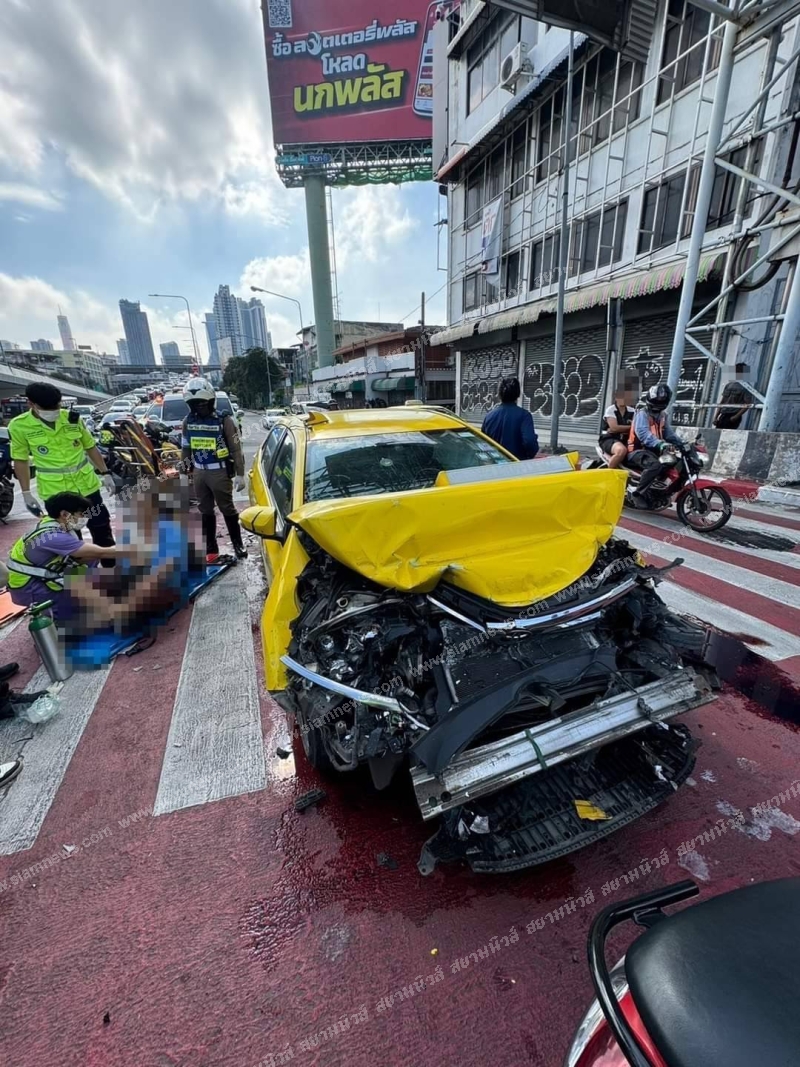 ด้านนางสาวเอ อายุ 46 ปี ผู้เสียหาย ซึ่งเป็นพนักงานธนาคารแห่งหนึ่ง เล่าว่า วันเกิดเหตุได้เรียกรถจากสุขุมวิท 39 เพื่อไปโรงพยาบาลศิริราช เมื่อขึ้นรถไปคนขับแท็กซี่บ่นว่าโดนผู้โดยสารโกงไม่จ่ายรถค่าแท็กซี่ บอกจะไปกดเงินให้แล้วก็หายไปเลย จากนั้นก็ได้มีการพูดคุยกันบ้าง แต่ก็ไม่ทราบว่าเขาคิดหรือเครียดอะไร เมื่อไปถึงใกล้ไฟแดง ซึ่งเป็นจุดที่ขับรถแทรกไม่ได้ ก็ได้ขับไปชนกับรถประจำทาง และไปชนเกาะกลางก่อนจะไปพุ่งชนกับรถเมล์ที่ติดไฟแดง ส่วนตัวเองได้รับบาดเจ็บ กรามหัก กระดูกแตกละเอียด เลือดออกภายใน ซึ่งหลังจากนี้ต้องรอให้กระดูกข้างในเข้าที่ ฟันไม่สามารถสบกันได้ ยังต้องได้รับการกายภาพอย่างต่อเนื่อง ส่วนการแจ้งความทางครอบครัวได้เป็นผู้ไปแจ้งความหลังเกิดเหตุที่สน.พญาไท เมื่อเวลา 10.30 น. ของวันที่ 13 ตุลาคม 2567 แต่ไม่ทราบรายละเอียดว่ามีพนักงานสอบสวนไปตรวจสอบที่เกิดเหตุ และได้เรียกตัวคนขับรถแท็กซี่มาที่ สน. หรือได้ตรวจสารเสพติด และแอลกอฮอล์ของคนขับรถแท็กซี่หรือไม่ ส่วนเรื่องการรักษาพยาบาลได้ใช้สิทธิประกันสุขภาพ ประกันอุบัติเหตุ และประกันของที่ทำงานที่มีอยู่ แต่ค่าใช้จ่ายที่เกิดขึ้นหลังจากออกจากโรงพยาบาลก็ยังมีอย่างต่อเนื่อง เพราะต้องรอให้แผลภายในสมานกันก่อนจึงจะทำการรักษาต่อได้