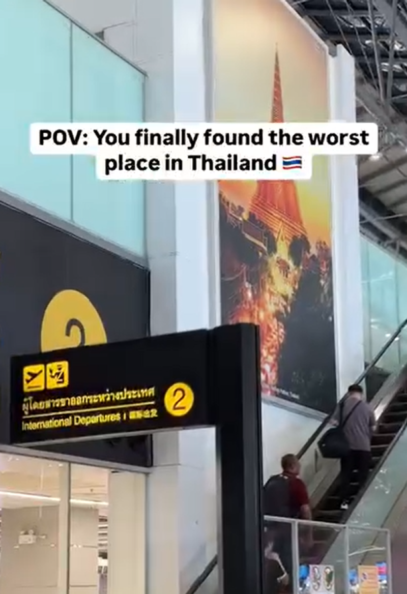 โดย จากคลิปชาวต่างชาติรายนี้แคปชั่นไว้ว่า "ในที่สุดก็เจอสถานที่ซึ่งไม่ชอบมากที่สุดในเมืองไทย" โดยในคลิปเผยให้เห็นภาพของ บันไดเลื่อน ระยะสั้น ๆ แค่ชั้นเดียว ซึ่งสถานที่ดังกล่าวนั้นคือ อาคารผู้โดยสารขาออก สนามบินสุวรรณภูมิ เพราะเมื่อขึ้นไปแล้วเท่ากับว่าต้องเดินทางออกจากประเทศไทย แหล่งท่องเที่ยวที่เขานั้นชื่นชอบและประทับใจนั่นเอง และ คลิปดังกล่าวกลายเป็นไวรัลในโลกออนไลน์ โดยมีชาวต่างชาติเข้ามาคอมเมนต์เพียบ โดยต่างรู้สึกเห็นด้วยว่าไม่ชอบบันไดเลื่อนแห่งนี้เอาเสียเลย เพราะเป็นที่ซึ่งต้องกลับจากทริปท่องเที่ยวเมืองไทยในวันหยุดยาวกลับไปสู่โลกความเป็นจริงอีกครั้ง จึงเรียกได้ว่าเป็นสถานที่ชวนใจหายของนักท่องเที่ยวหลาย ๆกันเลยทีเดียวค่ะ