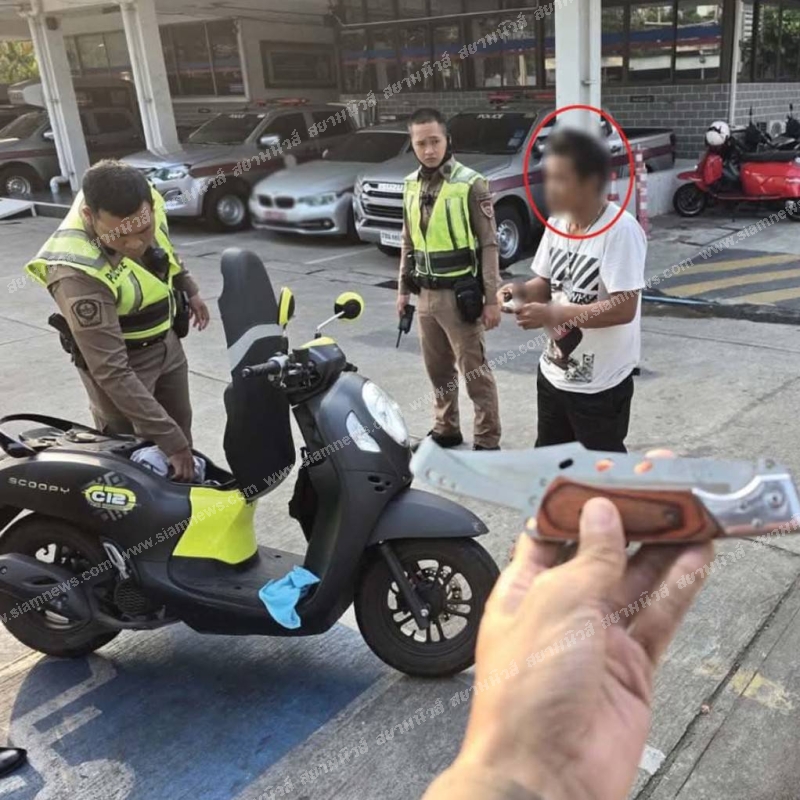 วันที่ 28 ม.ค. 68 เวลา 08.30 น. เจ้าหน้าที่ตำรวจ สน.สุทธิสาร ได้พบผู้ก่อเหตุขับขี่รถ จยย. มาบนถนนรัชดาภิเษก ด้านขาออก บริเวณหน้า สน.สุทธิสาร ท่าทางมีพิรุธ มีอาวุธมีด จึงได้ทำการควบคุมตัว มาตรวจค้น บริเวณลานจอดรถ สน.สุทธิสาร