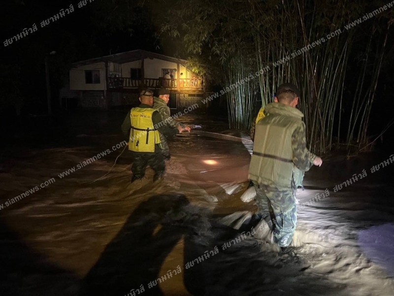 ต่อมาได้สั่งการให้ พันเอก ปิยะเณศร์ ภัทรศาศวัตวงษ์ รองผู้บังคับหน่วยเฉพาะกิจลาดหญ้า กองกำลังสุรสีห์ จัดกำลังพลเจ้าหน้าที่ทหาร หน่วยเฉพาะกิจลาดหญ้า กองกำลังสุรสีห์ ลงพื้นที่เฝ้าระวังสถานการณ์น้ำท่วม ในพื้นที่ หมู่ 2 บ้านบ้องตี้ล่าง ตำบลบ้องตี้ อำเภอไทรโยค จังหวัดกาญจนบุรี อย่างใกล้ชิด จนกระทั่งเวลา 20.00 น. พบน้ำป่าไหลหลากท่วมบ้านเรือนประชาชนในพื้นที่ บ้านบ้องตี้ อำเภอไทรโยค และพบถนนหลายเส้นถูกน้ำป่าพัดจนขาด จึงได้เร่งให้ความช่วยเหลือนำตัวประชาชนออกจากพื้นที่น้ำป่าไหลหลากด้วยความยากลำบาก