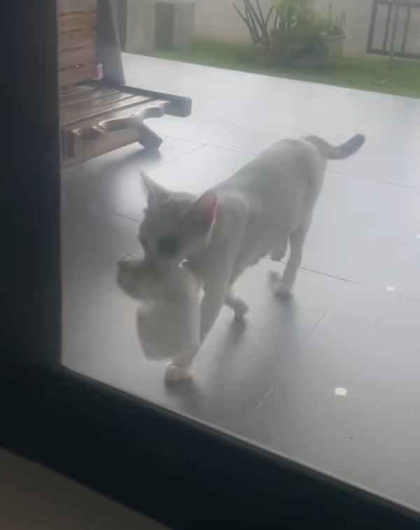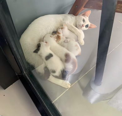 เมื่อวันที่ 4 กันยายน 2568 ที่ผ่านมาได้เกิดเรื่องราวสุดใจฟูในโลกออนไลน์ เมื่อมีผู้ใช้ TikTok yayaying_23 ได้โพสต์คลิปเผยให้เห็นภาพของแม่แมวตัวหนึ่งเป็นแมวจรจัดที่อาศัยอยู่ในหมู่บ้าน กำลังคาบลูกแมวของตัวเองมาวางไว้ที่หน้าบ้านของเจ้าของคลิป แม่แมวตัวนี้ชอบแวะมาขออาหารกินจากเจ้าของคลิปเป็นประจำ เจ้าเหมียวเห็นยังงั้นเลยเกิดความเชื่อใจทยอยพาลูกน้อยทั้ง 4 ตัวมาหา ด้วยความที่ในบ้านมีแมวอยู่แล้วสองตัว เจ้าของคลิปจึงให้แม่แมวกับลูกๆ อยู่ที่หน้าบ้านไปก่อนกลัวน้องแมวจะทะเลาะกัน