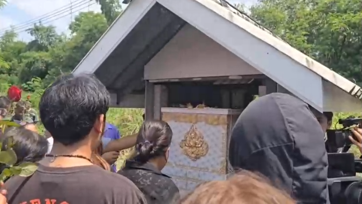 โดยทางครอบครัว ได้ทำพิธีตามความเชื่อโบราณของชาวมอญ นิมนต์พระ 4 รูป พร้อมเครื่องทำพิธีมาเตรียมไว้ ได้แก่ ดินปั้นห่อทอง ดอกกุหลาบ ดอกไม้ธูปเทียน และผ้าไตร ก่อนเริ่มขุดดินที่พื้นมาวางบนโลงศพ เรียงกับดินปั้นห่อทอง และสวดทำพิธี