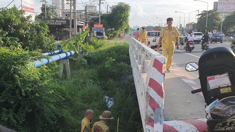 เมื่อเวลา 07.30 น. วันที่ 12 กันยายน 2568 ร.ต.ต.กฤติกร ภิญโญธนชัย รองสารวัตร (สอบสวน) สถานีตำรวจภูธรเสม็ด ได้รับแจ้งเหตุรถจักรยานยนต์ตกคลอง บริเวณใต้สะพานข้ามคลอง หมู่ที่ 2 ตำบลเสม็ด อำเภอเมือง จังหวัดชลบุรี จึงเดินทางเข้าตรวจสอบพร้อมเจ้าหน้าที่หน่วยกู้ภัยมูลนิธิไตรคุณธรรม