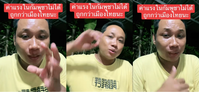 วันที่ 21 กันยายน 2568 บักบอย อินฟลูฯเขมร โพสต์คลิปพูดภาษาไทย ใน TikTok @makaraboy21 พร้อมข้อความ ค่าแรงในกัมพูชาไม่ได้ถูกกว่าเมืองไทยนะ แสดงความคิดเห็นเปรียบเทียบค่าแรงกัมพูชากับไทย