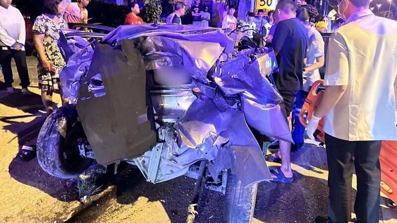 จากการตรวจสอบกล้องวงจรปิดบริเวณใกล้เคียง พบว่ารถกระบะวิ่งมาด้วยความเร็วสูง พุ่งชนท้ายรถเก๋งอย่างแรงจนรถเก๋งกระเด็นไปข้างหน้าประมาณ 50 เมตร ขณะที่รถกระบะเสียหลักพุ่งชนเสาเหล็กและกำแพง ก่อนจะหยุดนิ่งจอดขวางถนน