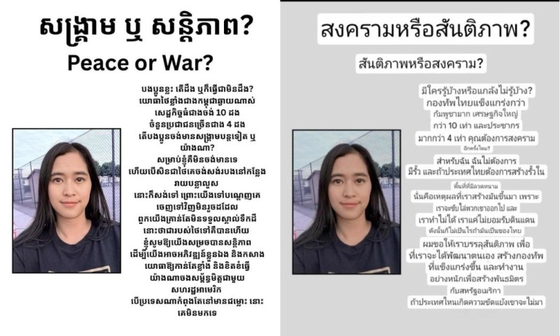 โดยระบุว่า คนกัมพูชาควรยอมรับความจริงเกี่ยวกับพื้นที่หนองจาน-หนองหญ้าแก้ว เพราะ กองทัพไทยแข็งแกร่งกว่า เศรษฐกิจใหญ่กว่า 10 เท่า และประชากรมากกว่า 4 เท่า เราไม่ต้องการสงครามอีกครั้ง
