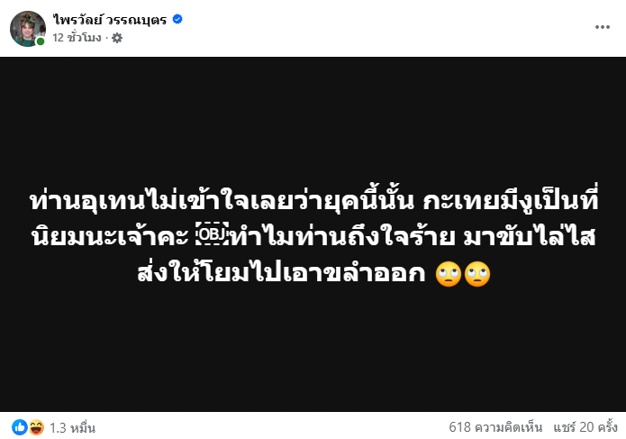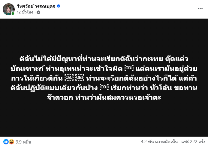 จากนั้น แพรรี่ ได้ออกมาโพสต์ข้อความตอบโต้ผ่านเฟซบุ๊ก ระบุว่า