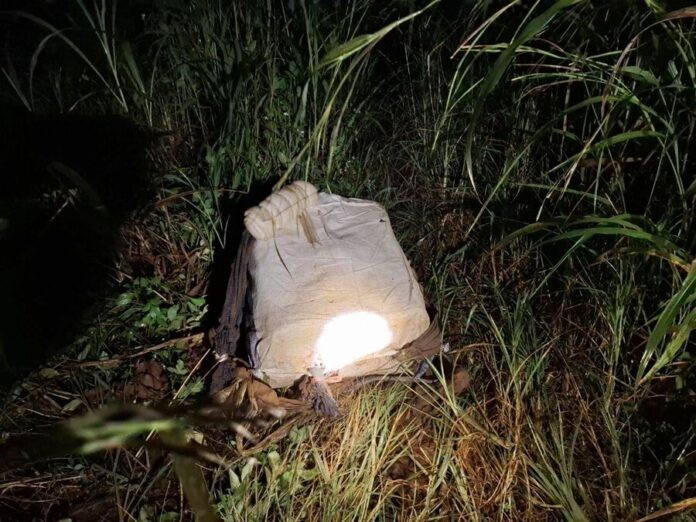ต่อมา เมื่อเวลา 20.00 น. วันที่ 4 ตุลาคม ที่ผ่านมา กำลังพลจาก กองร้อยทหารม้าที่ 2 หน่วยเฉพาะกิจไชยานุภาพ ได้จัดกำลัง 1 ชุดปฏิบัติการลาดตระเวนเฝ้าตรวจในพื้นที่ช่องทางธรรมชาติ บ้านอรุโณทัย ต.เมืองนะ อ.เชียงดาว จ.เชียงใหม่ ขณะลาดตระเวนได้พบกลุ่มบุคคลต้องสงสัยประมาณ 4-5 คน แบกกระสอบและสะพายเป้ดัดแปลงลักษณะคล้ายบรรจุสิ่งของผิดกฎหมาย จึงแสดงตัวขอตรวจค้น