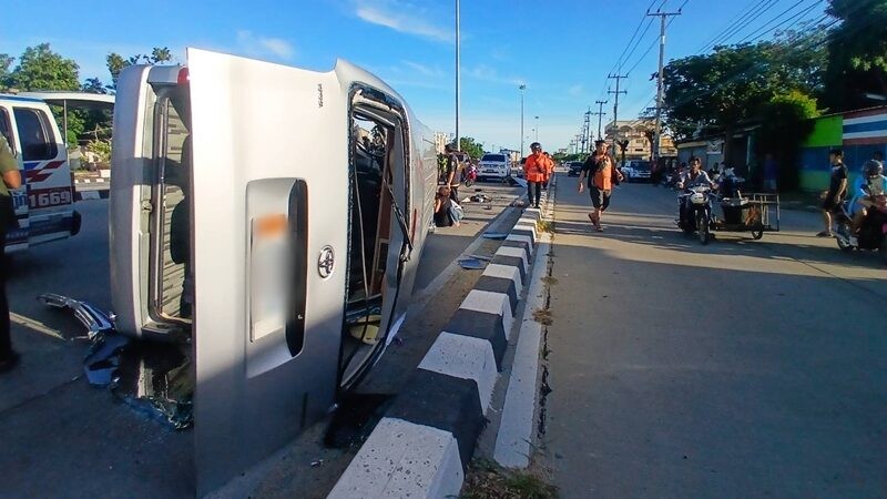 ที่เกิดเหตุพบรถตู้โดยสารทะเบียนจังหวัดอุทัยธานี สภาพพลิกคว่ำพังเสียหายทั้งคัน ภายในมีผู้โดยสารทั้งหมด 10 คน เจ้าหน้าที่กู้ภัยเข้าช่วยเหลือและปฐมพยาบาลเบื้องต้น ก่อนเร่งนำส่งโรงพยาบาลศูนย์เจ้าพระยายมราช พบว่า มีผู้บาดเจ็บ 9 ราย และ เสียชีวิต 1 ราย เป็นชาย เสียชีวิตในเวลาต่อมาที่โรงพยาบาล