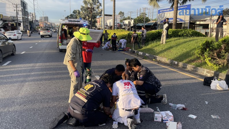 เมื่อเวลา 16.50 น. ( 6 ตุลาคม 68 ) ที่ผ่านมา พ.ต.ท.ทนงศักดิ์ อินผดุง สว.(สอบสวน) สภ.เมืองพัทยา ได้รับแจ้งเหตุ มีรถจักรยานยนต์ชนคนเดินข้ามถนน มีผู้ได้รับบาดเจ็บสาหัส 2 คน เหตุเกิดบริเวณหน้าศูนย์การค้าแห่งหนึ่ง ( ห้างแม็กโคร ) ถนนสุขุมวิท ฝั่งขาเข้าพัทยา ม.11 ต.หนองปรือ อ.บางละมุง จ.ชลบุรี หลังรับแจ้งจึงรีบรุดไปทำการตรวจสอบ พร้อมด้วยหน่วยกู้ภัยมูลนิธิสว่างบริบูรณ์ธรรมสถาน เมืองพัทยา