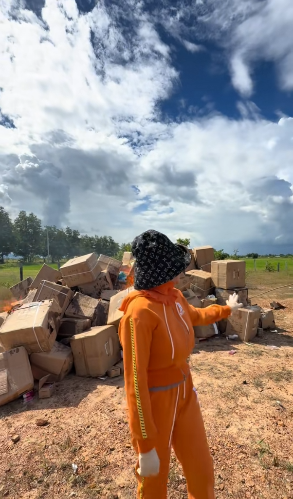 แต่ล่าสุด เธอได้ออกมาประกาศว่าจะนำสินค้าไทยทั้งหมดไปเผาทิ้ง โดยให้เหตุผลว่า อยากให้คนที่ดูถูกเธอว่า ไม่กล้าทำจริง เป็นทาสสินค้าไทย ได้เห็นก่อนว่าเธอกล้าทำจริงๆ เธอยอมรับว่า การทำเช่นนี้ก็เหมือนเผาเงิน แต่ไม่เป็นไรเธอยอมขาดทุน ล้มละลายไม่มีเงิน ดีกว่า ต้องใช้สินค้าไทย เพราะฉันเป็นคนเขมร ฉันรักเขมร ไม่ต้องการสนับสนุนสินค้าไทย