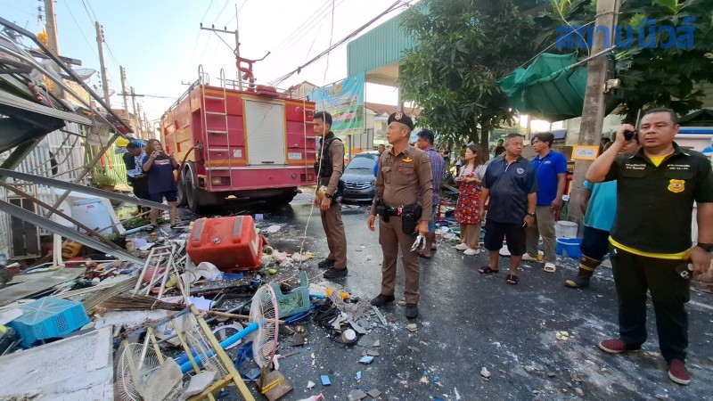 สอบถาม นายสมควร อายุ 52 ปี เจ้าของบ้านเลขที่ 69/128 เพื่อนบ้าน กล่าวว่า ได้ยินเสียงระเบิดดังมากก่อนที่ฝ้าของบ้านจะถล่มลงมา โดยได้ยินเสียงดัง 1 ครั้ง โดยบ้านที่เกิดเหตุเปิดเป็นร้านเสริมสวย โดยบ้านหลังดังกล่าวพักอาศัยกันอยู่ 3 คน แต่บ้านตนเองอยู่ด้วยกัน 4 คน ส่วนบ้านอีกหลังที่อยู่ติดกันไม่มีคนอยู่เพราะไปทำงานกันหมด